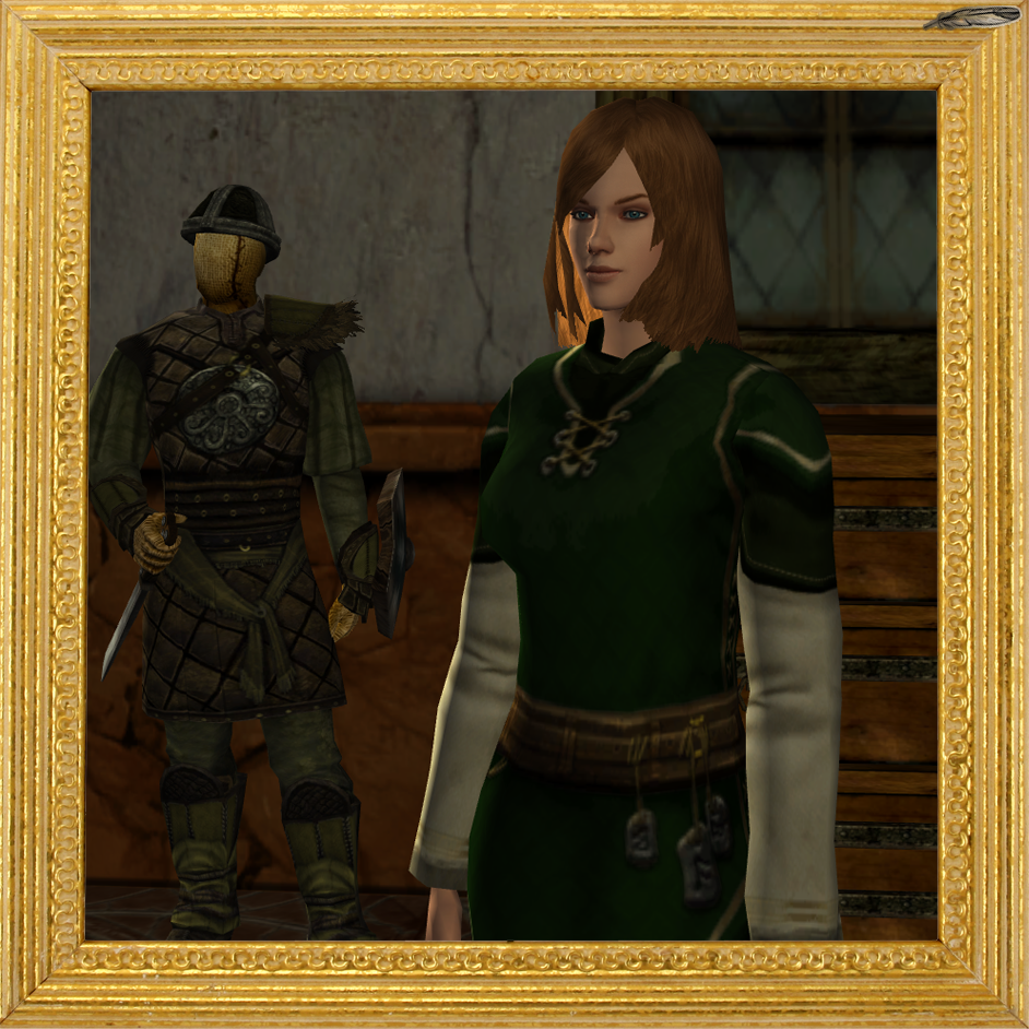 Die Zwillingsschwester Eoddrens. Was durchaus, trotz verschiedener Geschlechter, anhand der Augenpartie erkannt werden kann. Entgegen ihrem Bruder hat sie jedoch fuchsrote Haare, die für ihren Beinamen "Rotfuchs" verantwortlich sind. Sie ist zwar gesprächig, doch gibt sie auch zu erkennen, wenn es ihr für den heutigen Tag auch wieder genug ist. Gegenüber Kunden ist sie eigentlich immer freundlich und hat auch eine lockere Zunge, in Bezug auf den einen oder anderen Spruch. So könnte ein etwas beleibterer Kunde, durchaus auch mal gesagt bekommen, dass der Stoff um den gewünschten Preis einfach seinem Auftreten nicht gerecht wird - also zu wenig ist. Obwohl sie da sehr direkt ist, schafft sie es wohl immer derartiges gut zu verpacken, sodass sich auch niemand so richtig auf die Zehen getreten fühlt und sogar Spaß dabei hat. Eaddren ist groß gewachsen, schlanker, aber durchaus sichtbar harte Arbeit gewohnt. Leder aufziehen benötigt nun doch auch etwas Kraft.